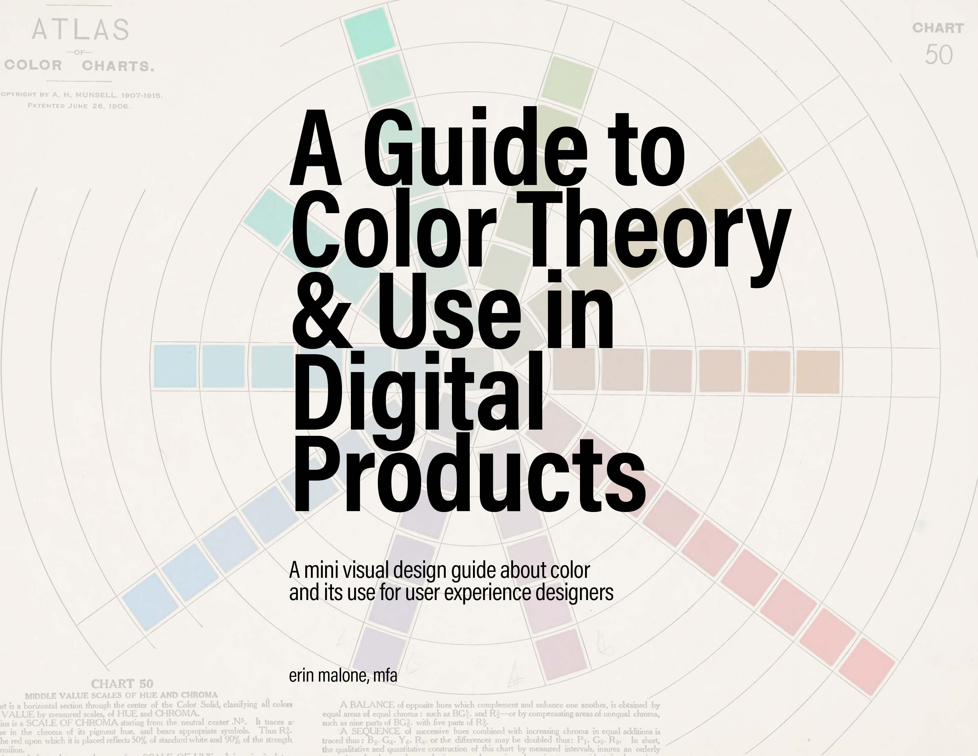 A mini visual design guide about color and its use for user experience designers. There are a lot of resources on the internet about color but to get the whole picture you have to find a lot of URLs, wade through examples from print sources to find digital examples of color in action and hunt around for useful tools to help you determine color palettes, accessibility issues and tools for specifying colors for CSS.