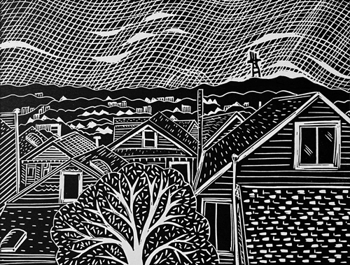 Bernal Heights - SF Views #1, 8”x6” Linoleum Blockprint, Edition of 20, 2025