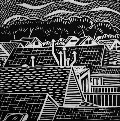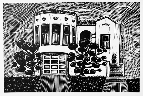 The House on Agnon, 9”x6” Linoleum Blockprint, Edition of 20, 2023