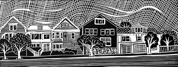 | Description | Small images of the neighborhood of Bernal Heights. I began this series series because I was drawn to the interplay of angles and textures across the roofs of my neighborhood (as seen from my balcony) and this subject appears in multiple photographs and blockprints. Interesting houses I pass everyday on my dogwalks are now part of the series, capturing the unique look of many of the streets in my neighborhood. This has evolved into San Francisco Views, which capture other well known places across the city. |